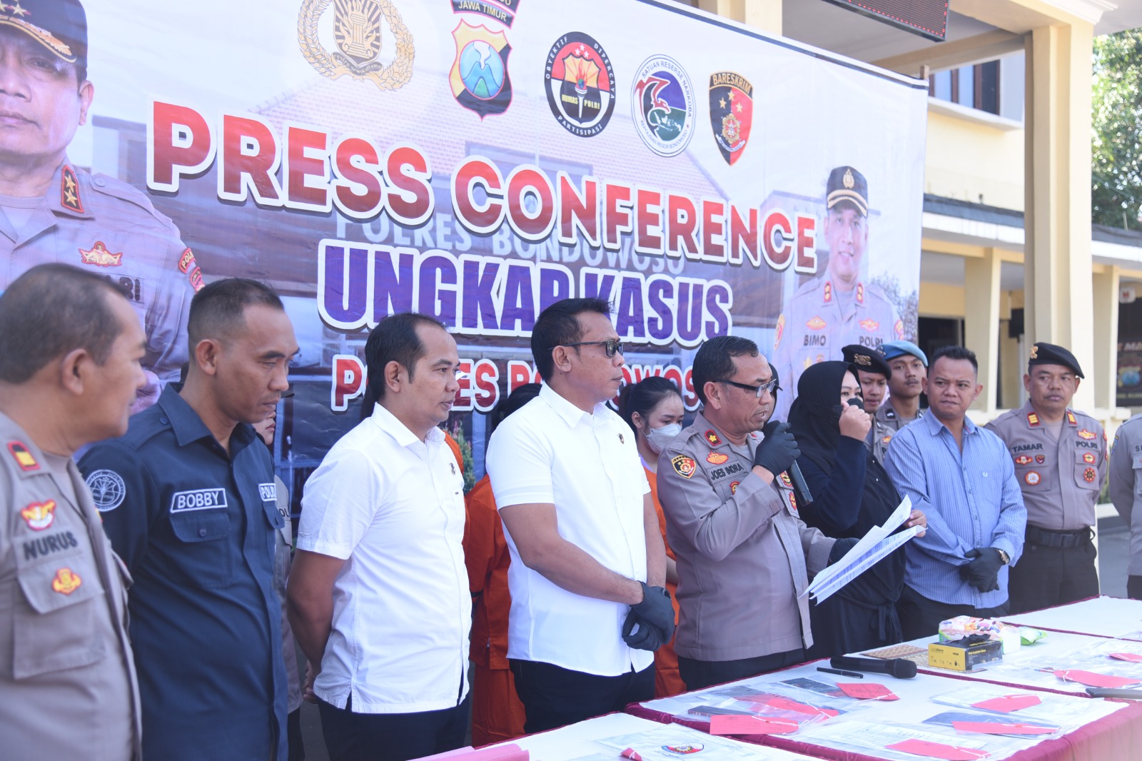 Keterangan tersebut disampaikan oleh Kapolres Bondowoso AKBP Bimo Ariyanto, SH. S.I.K melalui Wakapolres Kompol Joes Indra Lana Wira, SH dalam gelar Press Release pada hari Selasa 01/07 2023 dihalaman Polres Bondowoso.