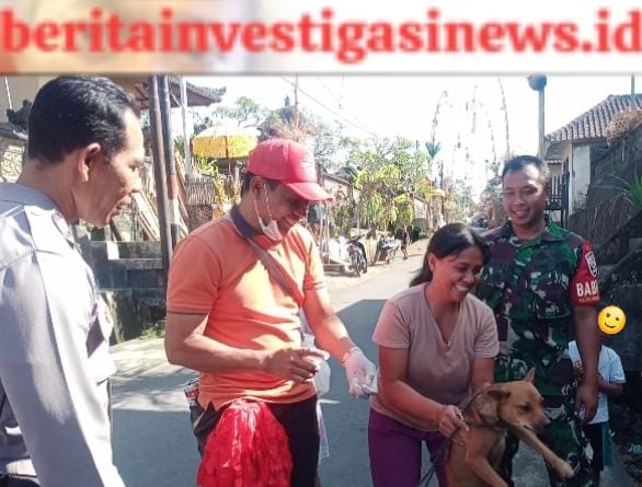 Beritainvestigasinews.id, Payangan Gianyar, Bali -Cegah Rabies, Babinsa-Bhabinkamtibmas Atensi Vaksinasi Rabies Serentak 2023. Bintara Pembina Desa (Babinsa) Desa Bresela Ramil 1616-07/Payangan Serka I Wayan Antara Yasa bersama Bhabinkamtibmas Desa Bresela Aiptu I Made Budiase melaksanakan Pemantauan dan monitoring kegiatan Vaksinasi Rabies serentak 2023 yang diselengarakan oleh UPTD1 Gianyar, Wilayah Puskeswan Payangan, bertempat di Banjar Bresela, Banjar Gadungan, Banjar Triwangse, Desa Bresela, Kecamatan Payangan, Kabupaten Gianyar, Bali. Senin (07/08/2023) waktu setempat.