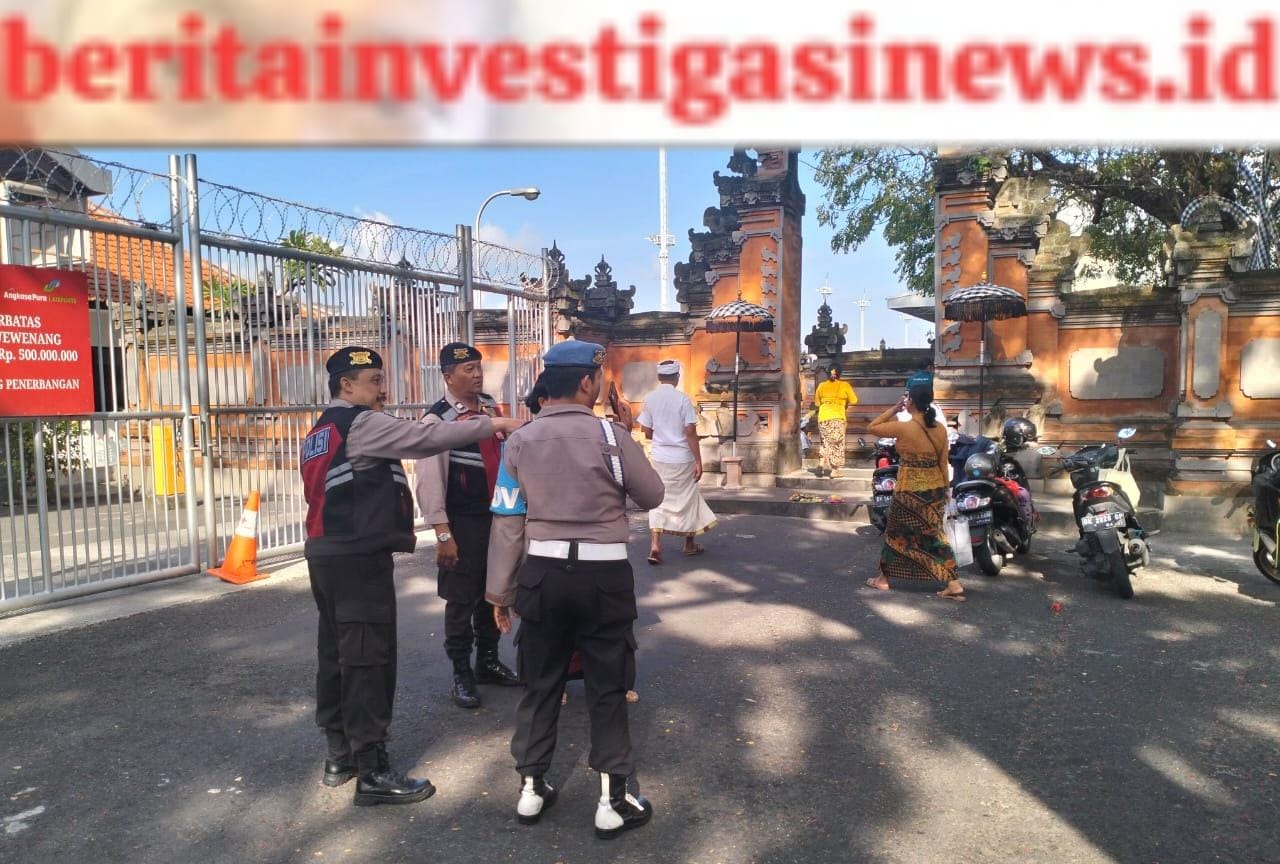 Beritainvestigasinews.id, Bandara Ngurah Rai, Bali - Polres Kawban Atensi Pengamanan Persembahyangan Hari Raya Kuningan. Persembahyangan Hari Raya Kuningan yang dilaksanakan di sejumlah Pura di Bandara I Gusti Ngurah Rai mendapat pengamanan dari personil Kepolisian Resor Kawasan Bandara (Polres Kawban) I Gusti Ngurah Rai, Bali. Sabtu (12/08/2023) waktu setempat.