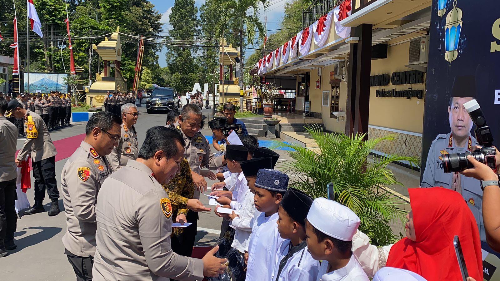 Sebelum meresmikan Ruang Harmoni Kapolda Jatim membagikan santunan kepada anak yatim dari Yayasan Peduli Yatim Duafa Rumah Singga.