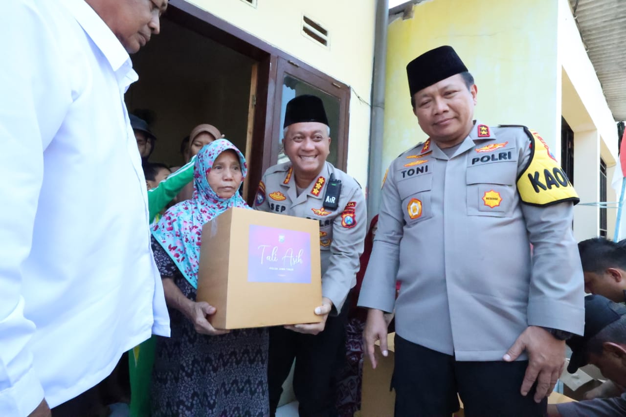 Diakhir kunjungannya, Kapolda Jatim juga memberikan bantuan sosial berupa bingkisan sembako kepada keluarga kurang mampu anak yatim piatu.