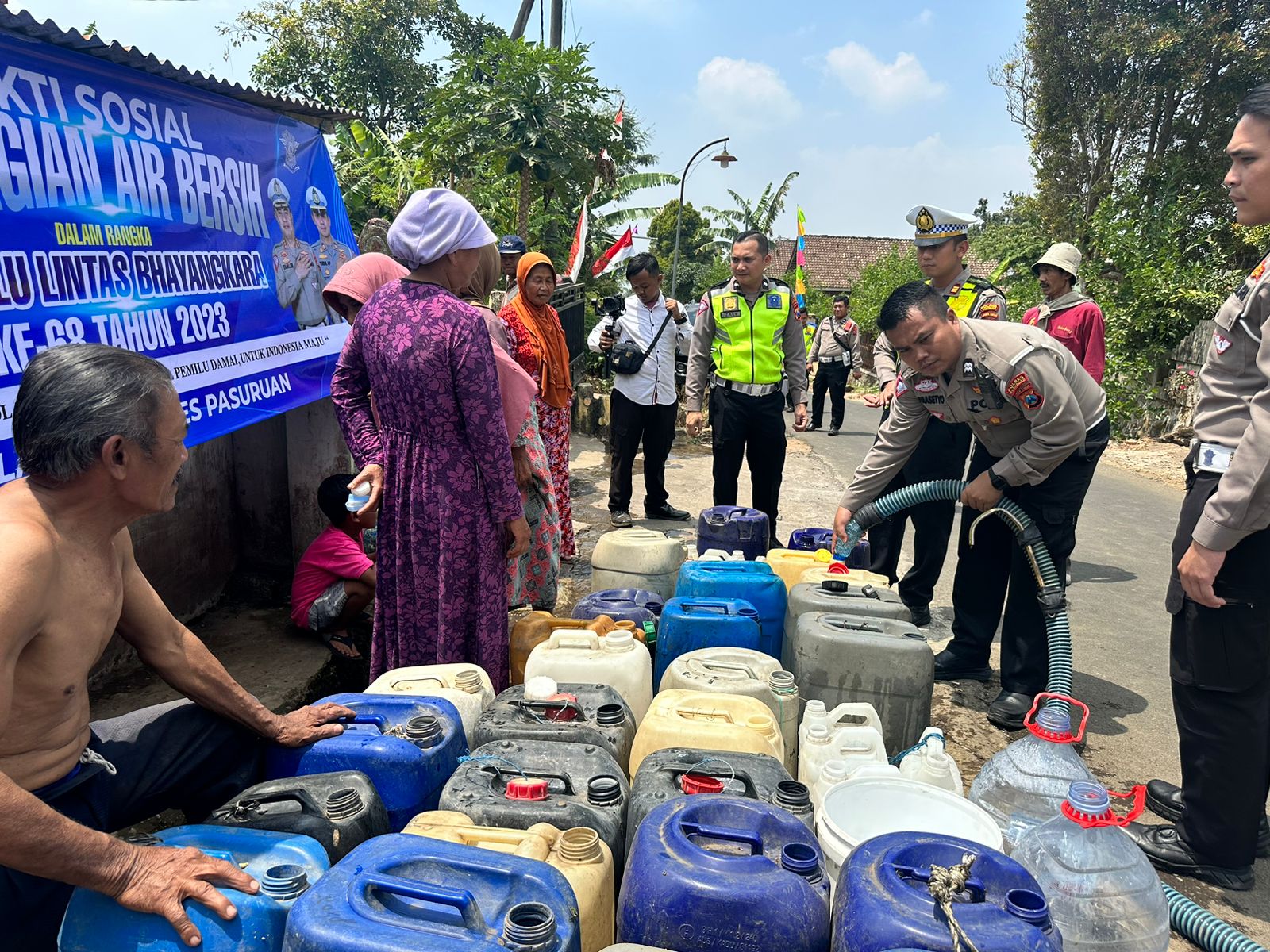 "Bantuan tersebut merupakan tindak lanjut dari kegiatan "Jum'at Curhat" oleh Bapak Kapolres Pasuruan yang menyampaikan keluhan Warga terkait kekeringan dan membutuhkan air bersih untuk kehidupan sehari-hari, dan juga bertepatan dengan Hari Lalu Lintas Bhayangkara ke-68 Tahun 2023," terangnya.