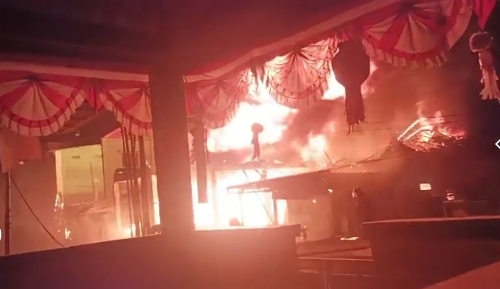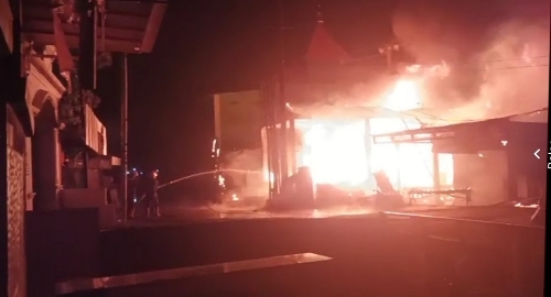 Beritainvestigasinews.id, Sidoarjo, - Telah terjadi kebakaran dari kios Pom mini pada saat pengisian bensin ke sepeda motor dan diduga diakibatkan konsleting dari kendaraan tersebut sehingga api cepat menyebar dan menyambar gudang penimbunan BBM yang dekat dengan 2(unit) kios pom mini tersebut, Lokasinya di jalan Singo Menggolo,desa Jumputrejo, kecamatan Sukodono, kabupaten Sidoarjo, Selasa ( 7/11/2023) jam: 21.45.