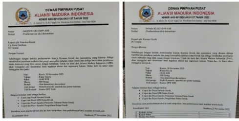 Untuk itulah Aliansi Madura Indonesia (AMI) akan menggelar aksi demonstrasi besar-besaran yang akan dipimpin langsung oleh Ketua Umum Aliansi Madura Indonesia (AMI) ke Rutan Gresik pada 30 November 2023 mendatang.