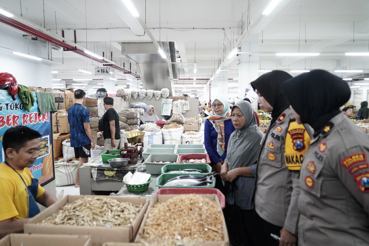 Kami memastikan persediaan bahan pokok pangan dan harga yang masih normal menjelang libur Natal 2023 dan Tahun Baru 2024,ungkap Kompol Verawaty di sela kunjungannya di Pasar Legi.