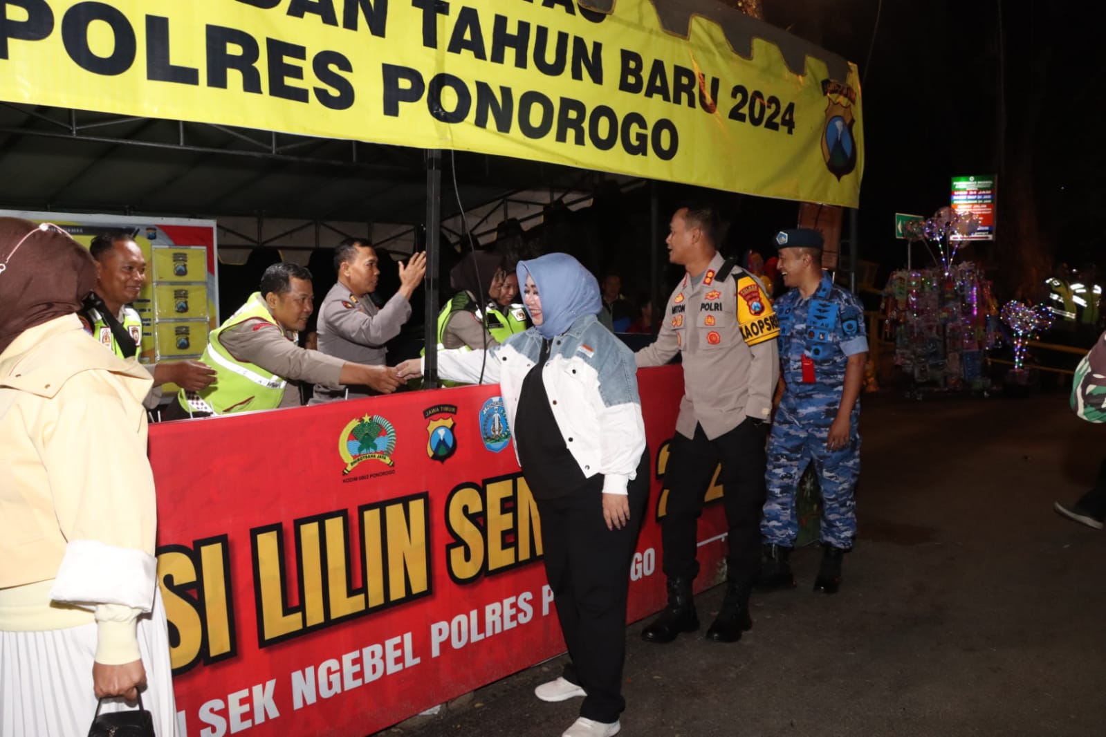Bupati Ponorogo juga menyampaikan terimaksih kepada Kapolres Ponorogo dan jajarannya yang telah berkerja keras dalam melakukan pengamanan hingga kegiatan perayaan malam tahun baru berjalan dengan baik.