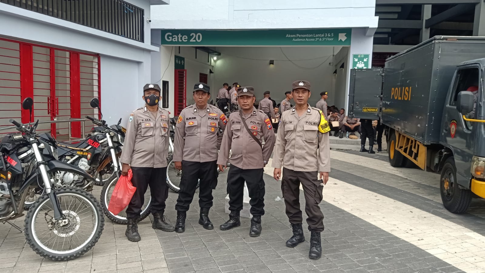 Seusai melaksanakan apel, kemudian semua personil TNI Polri ini menuju ke titik-titik yang sudah di ploting, untuk Polsek Simokerto mendapatkan ploting mengamankan di Gate 20.
