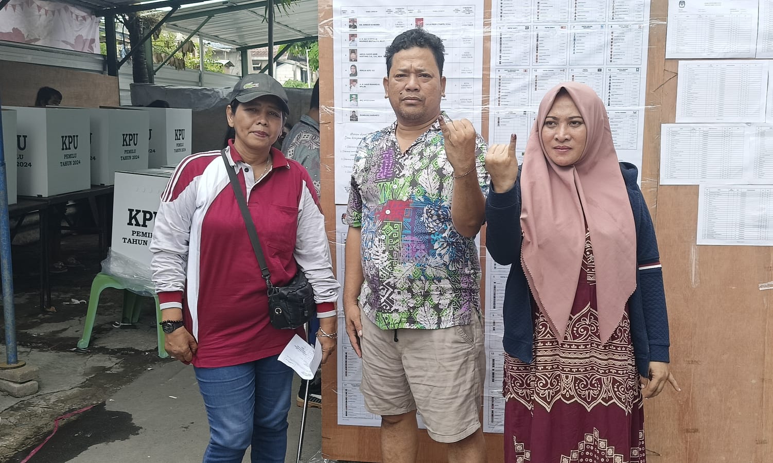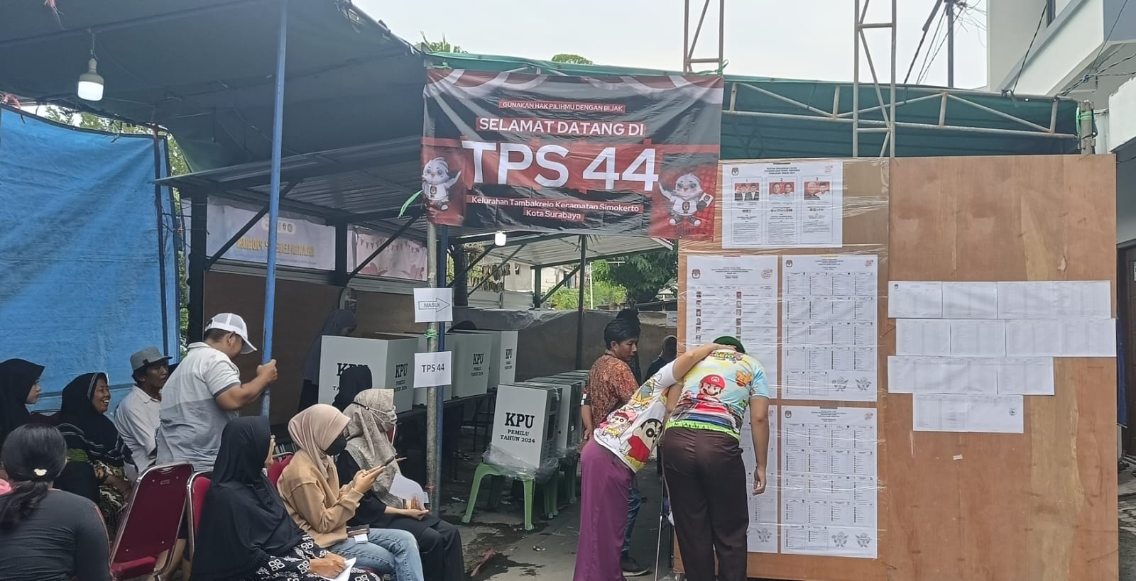 Beritainvestigasinews.id, Surabaya, - Warga Kapasari Pedukuhan kelurahan Tambakrejo berbondong-bondong ke TPSUmar Hayat didampingi istri dan anaknya saat menyalurkan suara di TPS 044, Kelurahan Tambakrejo, Kecamatan Simokerto Kota Surabaya.