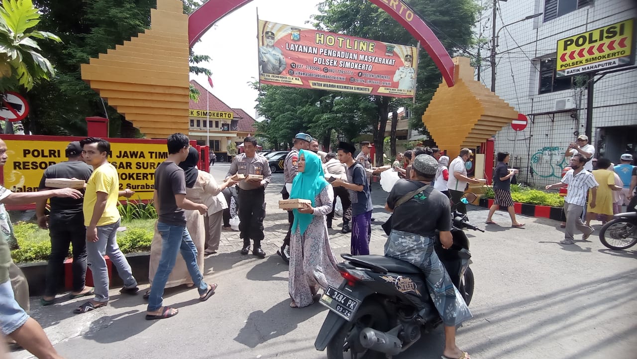 "Sangat senang sekali dengan adanya pembagian nasi kotak yang dilakukan oleh Polsek Simokerto dan kita Doa kan Polsek Simokerto Sukses dan maju terus," ujar pengendara motor yang menerima nasi kotak.