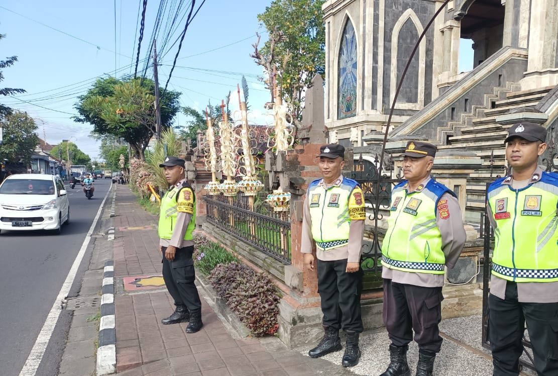 Untuk memberikan pelayanan kepada masyarakat, khususnya kenyamanan dan keamanan bagi umat ktistiani yang sedang melaksanakan ibadah Jumat Agung, polsek mengwi sudah menempatkan anggotanya di 12 geraja yang melaksanakan perayaan ibadah Jumat Agung.
