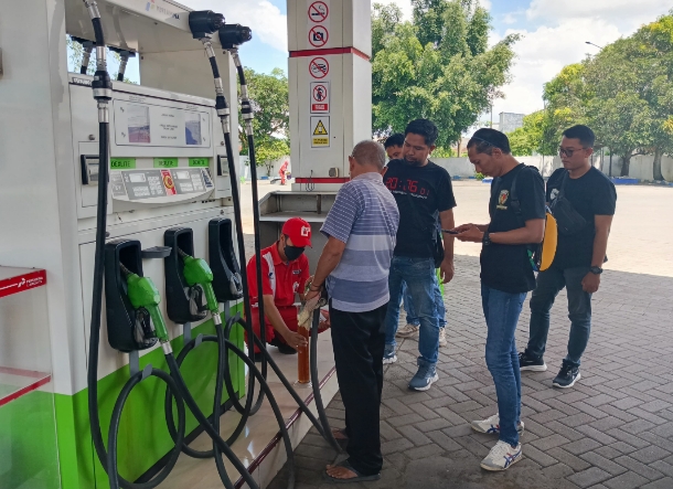 "Juga pengecekan dari alat dispenser yang ada di SPBU. Untuk takarannya menggunakan gelas ukur, kami pastikan ukurannya pas dengan standar pengecekan ini, harus pas per liternya," imbuhnya.