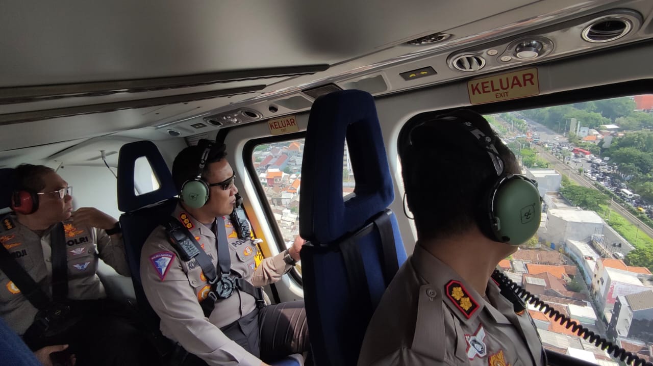Beritainvestigasinews.id, Surabaya, - Direktur Lalulintas (Dirlantas) Polda Jawa Timur Kombes Pol Komarudin bersama jajaran Satlantas Polda Jatim, Sabtu)(6/4/2024) melakukan pantauan udara menggunakan helikopter di sejumlah titik rawan kemacetan, di Jawa Timur, Sabtu (5/4).