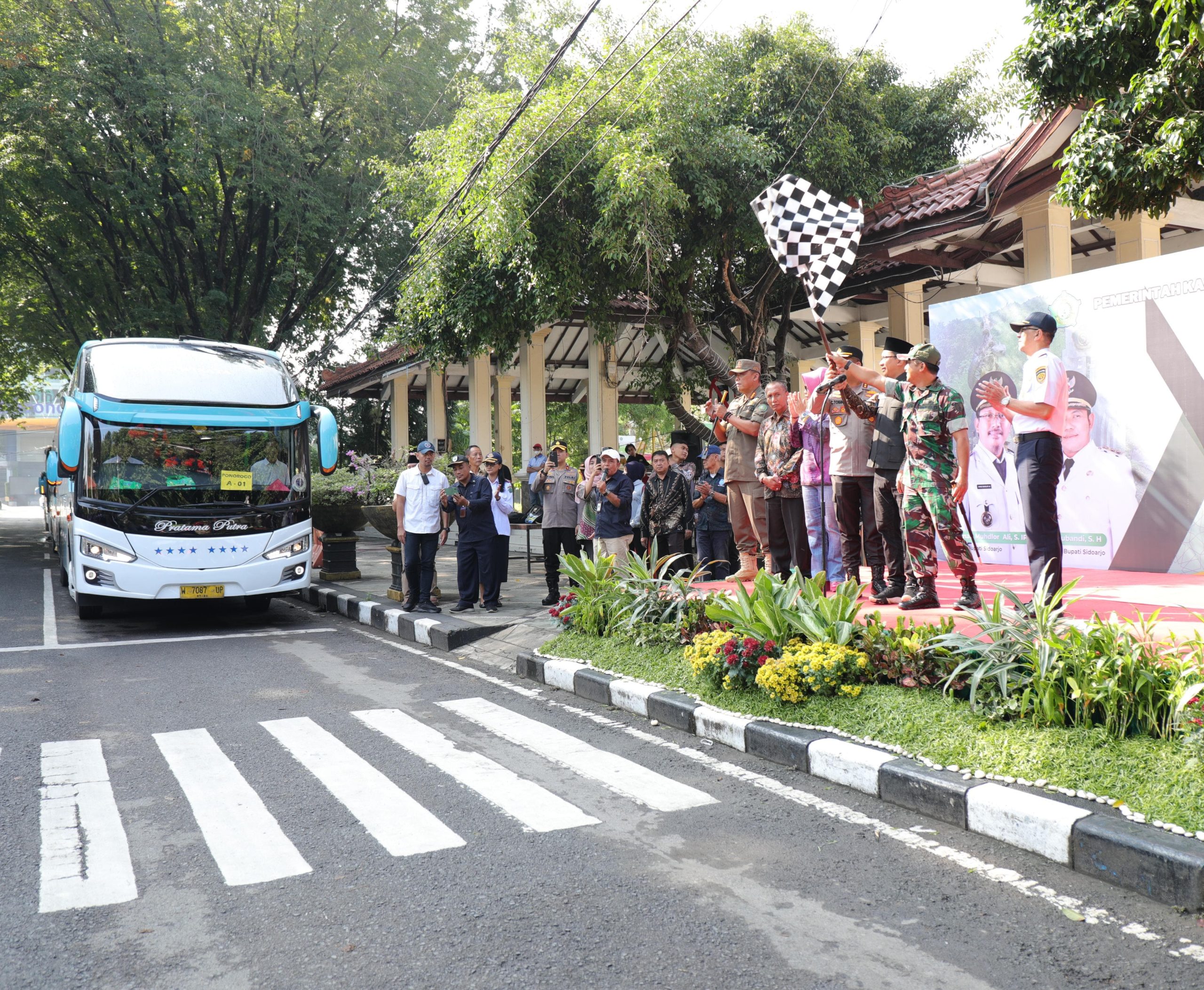 Beritainvestigasinews.id, Sidoarjo, - Bupati Sidoarjo Ahmad Muhdlor Ali melepas keberangkatan 1.400 peserta mudik gratis dengan 28 armada bis di Alun-alun Sidoarjo pada Sabtu (6/4/2024).