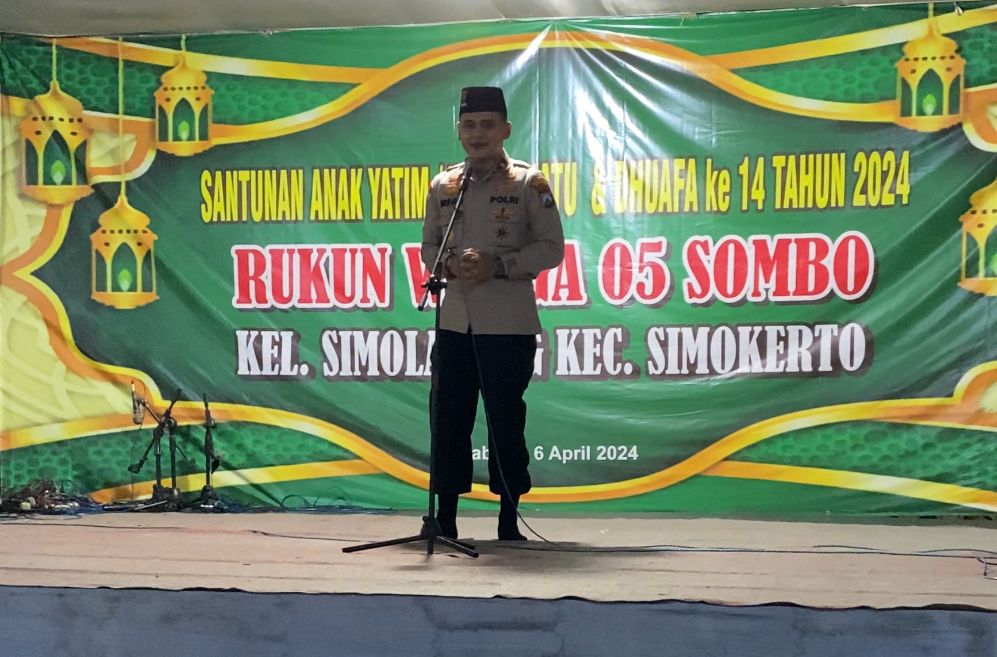Pemberitahuan tersebut disampaikan Kompol M. Irfan sekira pukul 20.00 Wib, saat sambutan acara santunan anak Yatim Piatu dan Dhuafa di lapangan futsal Rusun Sombo, Sabtu, 6/4/2024.