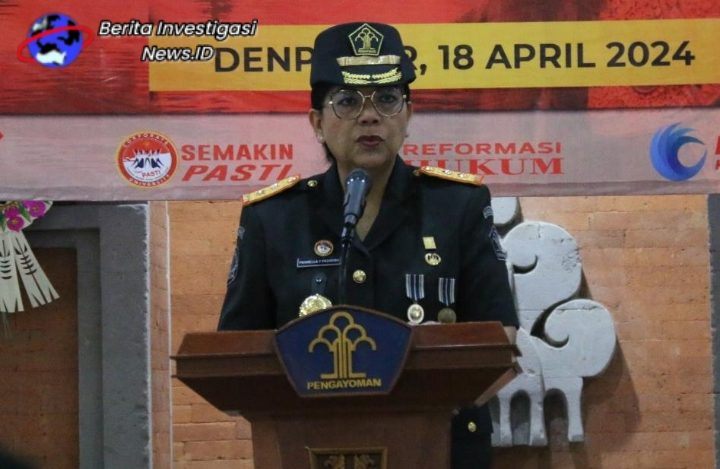 Beritainvestigasinews.id, KOTA DENPASAR, BALI, - Kepala Kantor Wilayah (Kakanwil) Kemenkumham Bali, Pramella Yunidar Pasaribu mengambil sumpah Pejabat Fungsional dan Anggota Majelis Pengawas Daerah Notaris di Ruang Dharmawangsa, Kamis (18/4/2024).