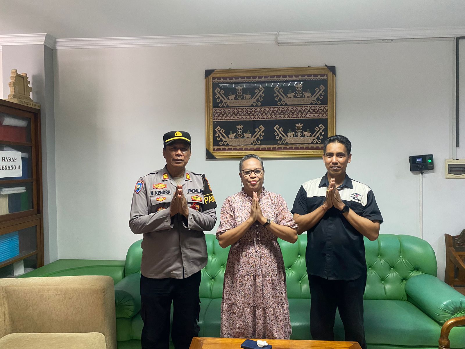 Kegiatan silaturahmi yang dihadiri oleh Kasat Binmas AKP I Nyoman Kendra didampingi Kaur Bin Ops (KBO) Intelkam Ipda I Wayan Miantha disambut hangat oleh Pendeta Monika V. Loloang Molle bersama dengan pengurus Gereja Ekklesia.
