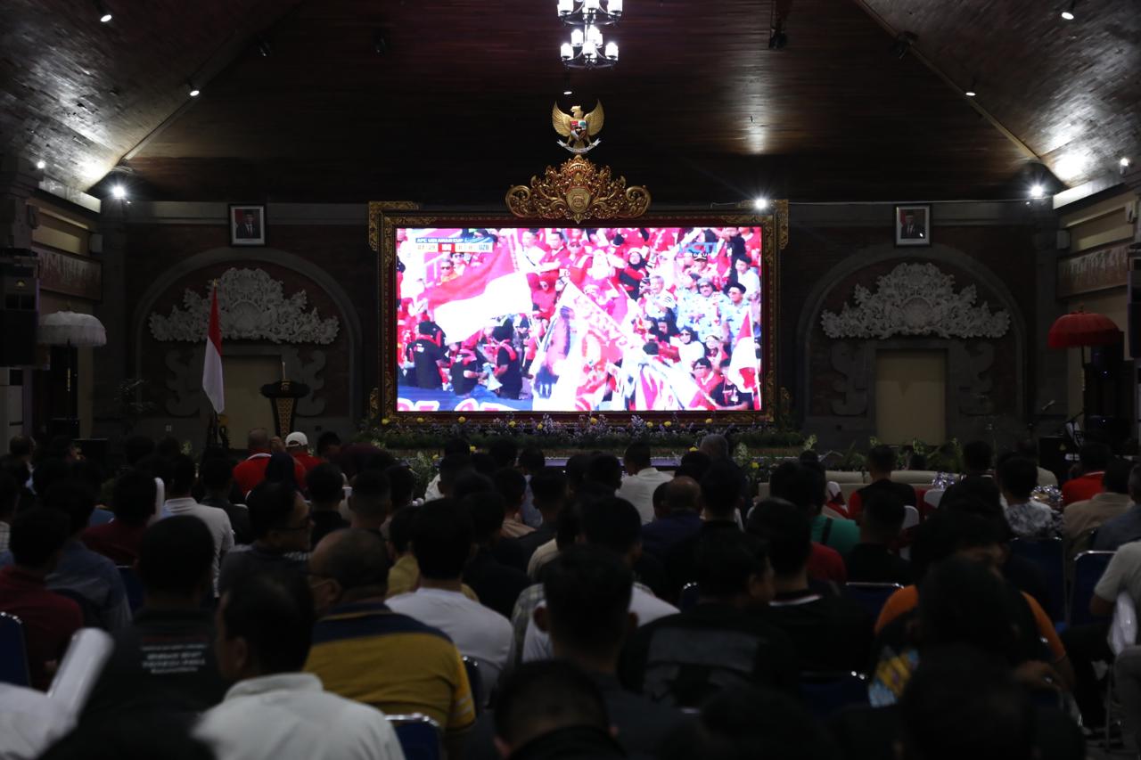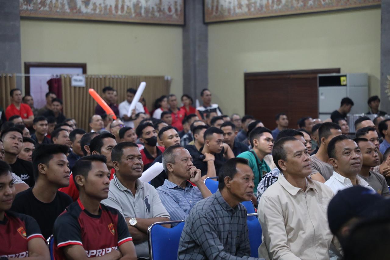 Beritainvestigasinews.id, KOTA DENPASAR, BALI, - Kepolisian Daerah (Polda) Bali menggelar acara Nonton Bareng (Nobar) semi final AFC U23 antara Timnas Indonesia melawan Timnas Uzbekistan di Gedung Presisi Polda Bali, Senin (29/4/2024) malam.