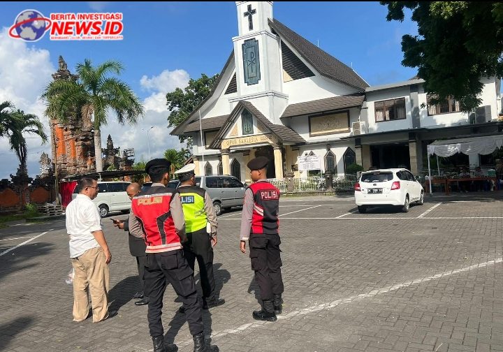 Beritainvestigasinews.id, BADUNG, BALI, - Kegiatan persembahyangan atau ibadah Minggu di Gereja Ekklesia Tuban Bandara I Gusti Ngurah Rai mendapat pengamanan dari personil gabungan Polres Kawasan Bandara I Gusti Ngurah Rai yang langsung dipimpin oleh Perwira Pengawas (Pawas), Minggu (12/5/2024).