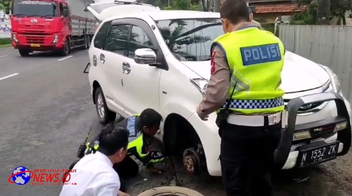 Kasat Lantas Polres Lumajang AKP Suwarno mengatakan, bahwa dua anggota Satlantas saat melaksananakan patroli di jalan raya desa Kedungjajang melihat mobil Avanza N 1552 ZK alami ban kempes langsung bergegas membantunya.