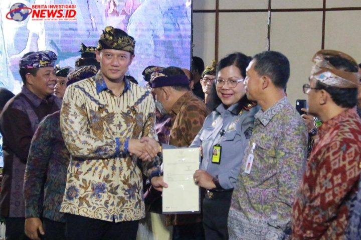 Beritainvestigasinews.id, KOTA DENPASAR, BALI, - Kepala Kantor Wilayah Kementerian Hukum dan HAM Bali, Pramella Yunidar Pasaribu menerima sertifikat elektronik Hak Pakai lahan untuk Lapas Kelas IIB Singaraja yang diserahkan secara langsung oleh Menteri Agraria dan Tata Ruang/Badan Pertanahan Nasional (ATR/BPN), Agus Harimurti Yudoyono (AHY) dalam kegiatan Implementasi Layanan Elektronik Se-Provinsi Bali, Deklarasi Empat Kabupaten Lengkap, dan Peluncuran Mobil Layanan Elektronik di Gedung Wiswa Sabha Utama, Kantor Gubernur Bali, Selasa (21/5/2024).