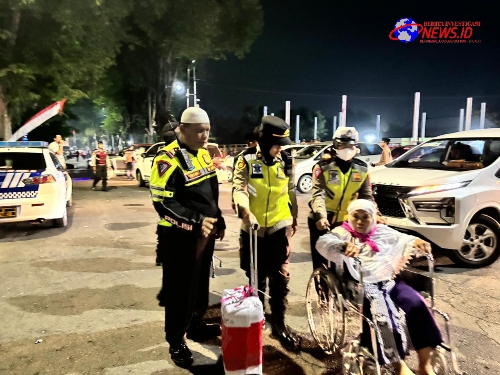Kepedulian para Polwan Polres Lumajang kepada jamaah haji, nampak saat membatu calon jemaah haji yakni seorang lansia baru turun dari mobil menuju Pendopo Arya Wiraraja dengan menggunakan kursi roda.