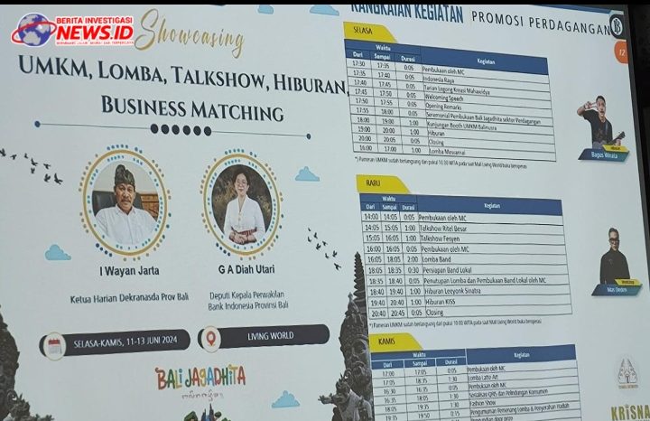 Acara Business Matching dan Site Visit Bali Jagadhita Investment Forum 2024 merupakan bagian dari forum investasi tahunan yang diselenggarakan oleh Pemerintah Provinsi Bali. Forum ini bertujuan untuk mempromosikan potensi investasi di Bali kepada investor domestik dan internasional.