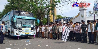 Beritainvestigasinews.id, Bangkalan, - Pengamanan ekstra ketat diterapkan personel gabungan Polres Bangkalan, jelang pemberangkatan 653 CJH yang dilepas secara bergilir oleh anggota Forkopimda dari depan Mesjid Agung Kota Bangkalan di jalan raya Sultan Abdul Kadirun, Sabtu (8/6) kemarin.