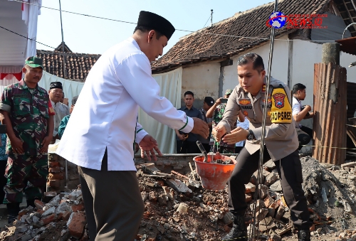 Beritainvestigasinews.id, Nganjuk, - Kapolres Nganjuk, AKBP Muhammad, S.H., S.I.K., M.Si., didampingi Pejabat Utama(PJU), para Kapolsek, Ketua Baznas Kabupaten Nganjuk serta unsur Forkopimcam Nganjuk dan pemerintahan kelurahan Kramat meletakan batu pertama kegiatan Program Bedah Rumah.