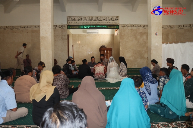 Prosesi pernikahan kedua mempelai digelar di Masjid Baiturahim, Polres Kediri Kota. Meski diselimuti suasana haru, prosesi pernikahan berjalan dengan lancar.