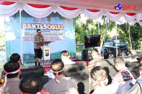 Dimana pada sambutannya, Kapolres Bangkalan AKBP Febri Isman Jaya, S.H., S.I.K., M.I.K., bahwa Penanaman mangrove ini dalam rangka memperingati HUT Bhayangkara ke 78 yang dilaksanakan serentak seluruh Indonesia.