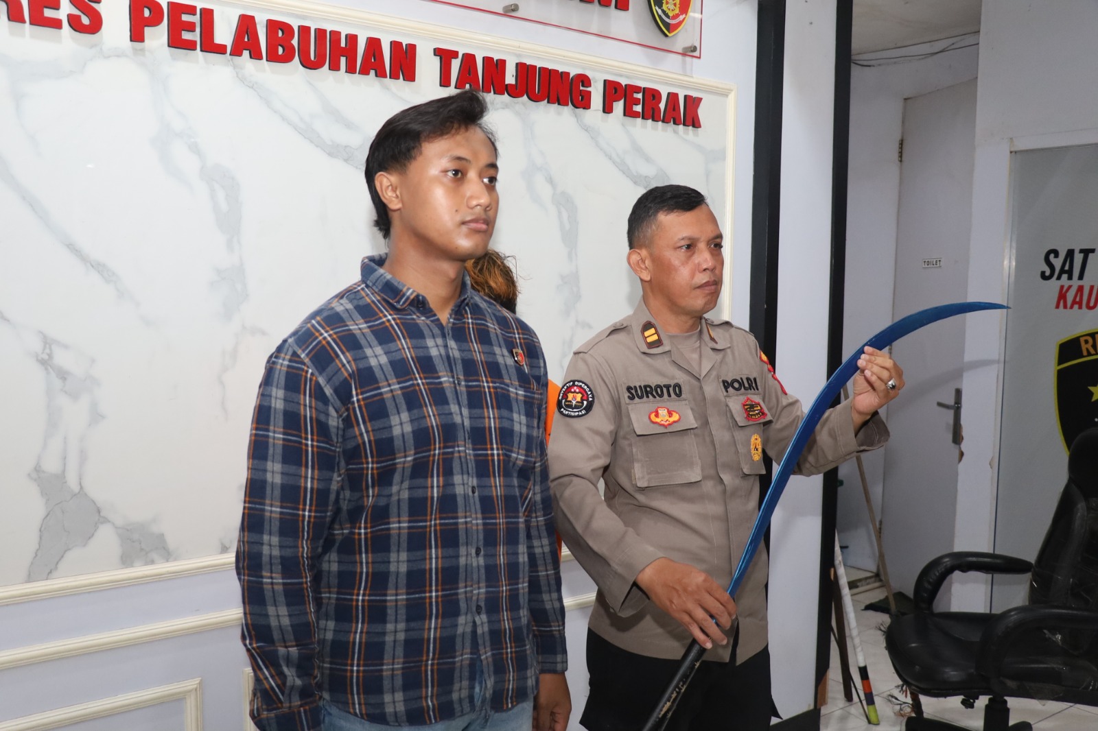 "Setelah dilakukan penyelidikan, Polisi mengamankan F dirumahnya Jalan Dupak Magersari Surabaya dengan barang bukti sebilah celurit sepanjang 90 cm," jelas IPTU Suroto.