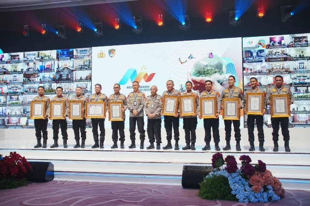 Piagam penghargaan diserahkan langsung oleh Kapolri kepada Kapolres Mojokerto Kota AKBP Daniel S Marunduri dalam acara Musrenbang Polri 2024 di Hotel The St Regis, Jakarta pada Selasa (9/7/24).