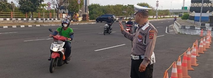Untuk mengantisipasi para pengendara yang akan menuju Tol Bali mandara jangan sampai terganggu akibat terjadinya antrian panjang, Personil Lalu lintas melakukan pengaturan di pintu masuk pelabuhan Benoa.