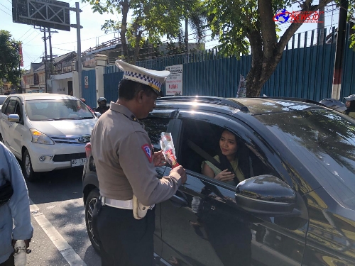 Total ada sekitar 50 pengendara yang kita kasih bunga dan cokelat, kemudian untuk pengendara yang kurang tertib kami tegur secara lisan,ujar Kanit Pengaturan Penjagaan Pengawalan dan Patroli (Turjawali), Satlantas Polres Blitar Kota, Ipda Suratno