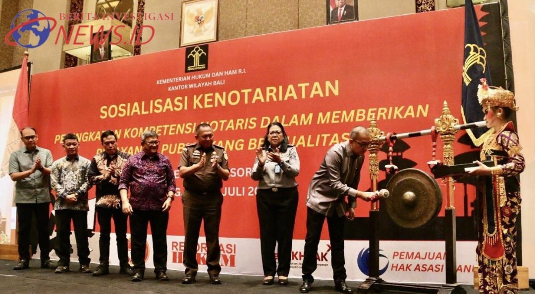 Beritainvestigasinews.id, BADUNG, BALI, Kantor Wilayah Kementerian Hukum dan HAM (Kemenkumham) Bali bersama Kejaksaan Tinggi (Kejati) Bali memperkuat sinergi dalam mengawasi kinerja notaris di wilayah Bali. Kolaborasi ini diwujudkan dalam Sosialisasi Kenotariatan "Peningkatan Kompetensi Notaris dalam Memberikan Pelayanan Publik yang Berkualitas" yang digelar di Hotel The Trans Resort Bali, Senin (29/7/2024).