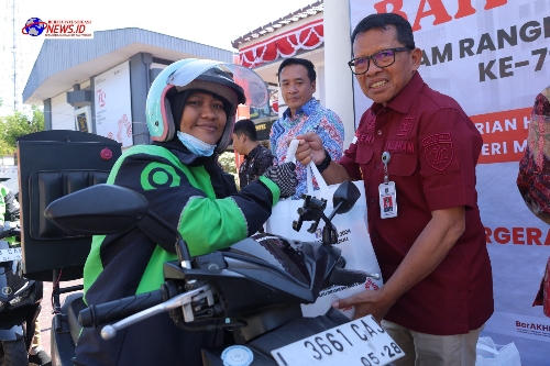 Siang harinya, Kakanwil Heni Yuwono memimpin jajarannya menggelar bakti sosial dengan membagi sembako untuk mitra pengemudi ojok online, Kamis (8/8).