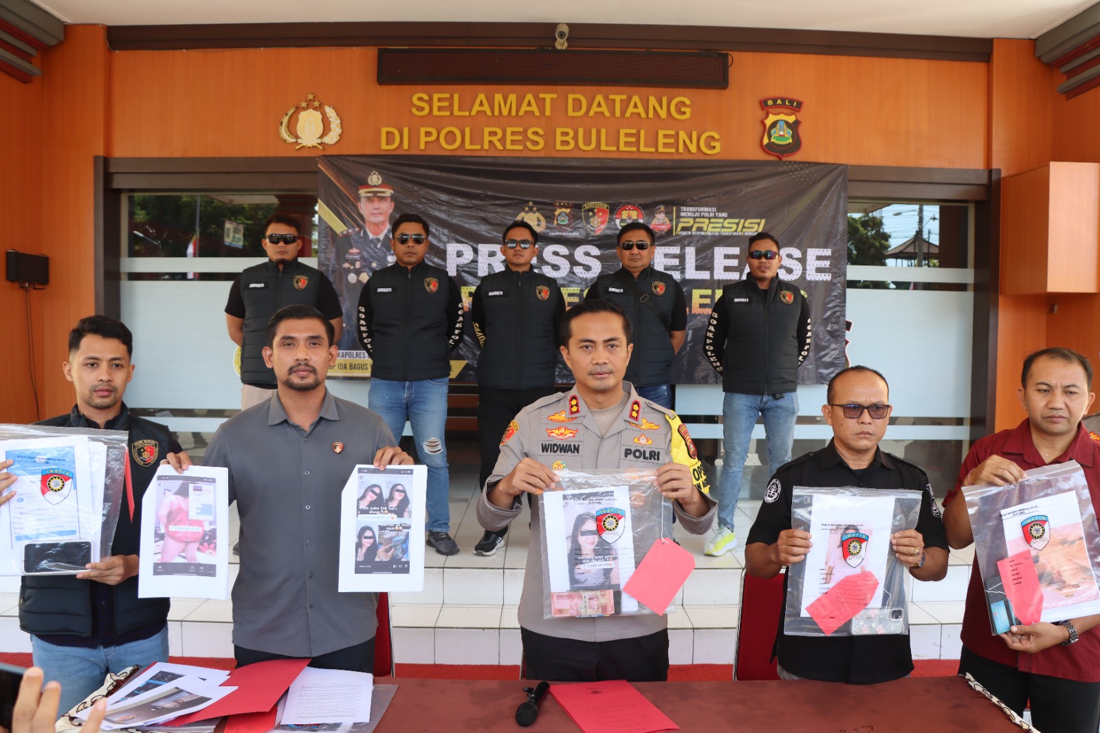 >FOTO: Kapolres Buleleng AKBP Ida Bagus Widwan Sutadi, S.I.K., M.H., menunjukan barang bukti di depan media. Sumber: Polres Buleleng.[/caption]