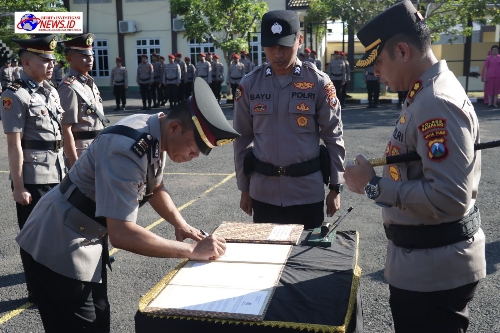 Di acara tersebut, diilakukan penandatanganan Berita Acara Sertijab, pengambilan sumpah,, dan Pakta Integritas serta pengambilan sumpah jabatan oleh Kapolres Sampang AKBP Hendro Sukmono.