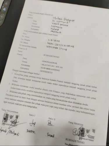 Kemudian dalam proses kredit di Asia Finance ini, terdapat kendala pembayaran oleh Mulyadi. Akhirnya pada (25/10/2022), dilakukanlah take over ke Adira Dinamika Multi Finance Tbk, Cabang Mojokerto.
