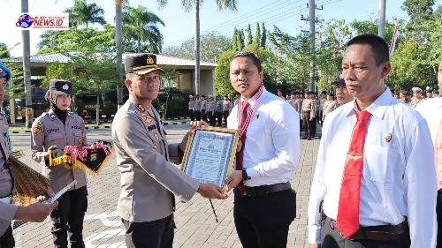 Piagam penghargaan tersebut diberikan secara seremonial dalam upacara yang dilangsungkan di halaman apel Polres Nganjuk dan diikuti oleh Pejabat utama (PJU) dan anggota Polres Nganjuk, Senin (05/8/2024).