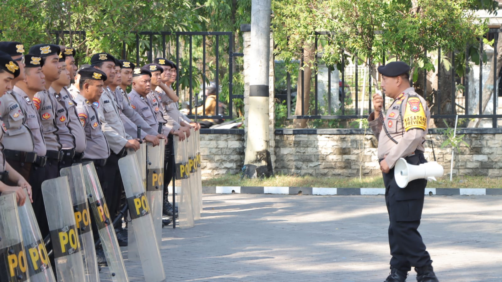 "Jika nantinya dalam proses pengamanan, kita dihadapkan dengan situasi yang tidak diinginkan hingga harus berhadapan langsung dengan massa, maka Kami personil Polres Nganjuk sudah dalam keadaan siap," terang AKBP Siswantoro S.I.K.,M.H .