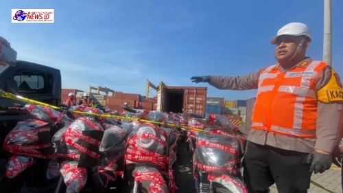 Kontainer tersebut memuat dua kendaraan jenis roda empat dan 34 jenis kendaraan roda dua, Ucapnya.