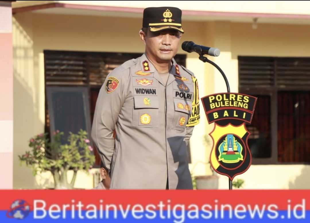 Foto: Kapolres Buleleng Ida Bagus Widwan Sutadi, S.I.K., M.H., memimpin apel jam pimpinan. Sumber: Polres Buleleng.[/caption]