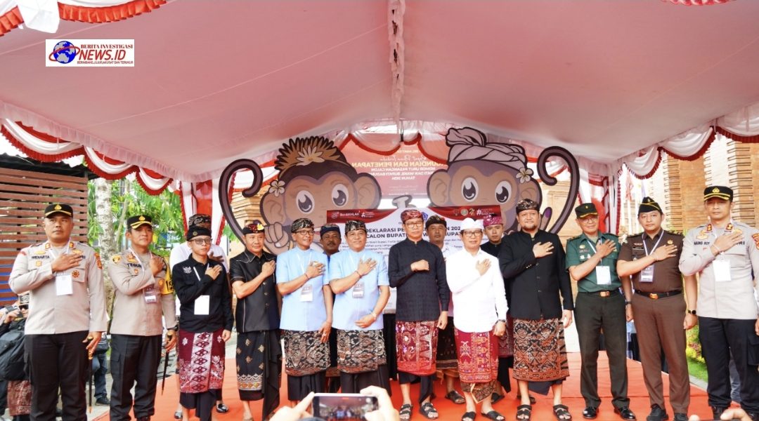 Beritainvestigasinews.id, Mangupura, Bali, - Kapolres Badung AKBP Teguh Priyo Wasono, S.I.K., bersama Forum Koordinasi Pimpinan Daerah (Forkopimda) Badung, hadir dalam acara Rapat pleno terbuka pengundian dan penetapan nomor urut pasangan calon Bupati dan wakil Bupati Badung yang dirangkaikan dengan deklarasi kampanye damai dalam pemilihan kepala daerah serentak tahun 2024 yang berlangsung di kantor KPU Badung yang berlokasi di Gedung Graha Pemilu Alaya Giri Nata, Jalan Kebo Iwa No. 39 Denpasar, pada Senin (23/9/2024) pukul 10.00 Wita.