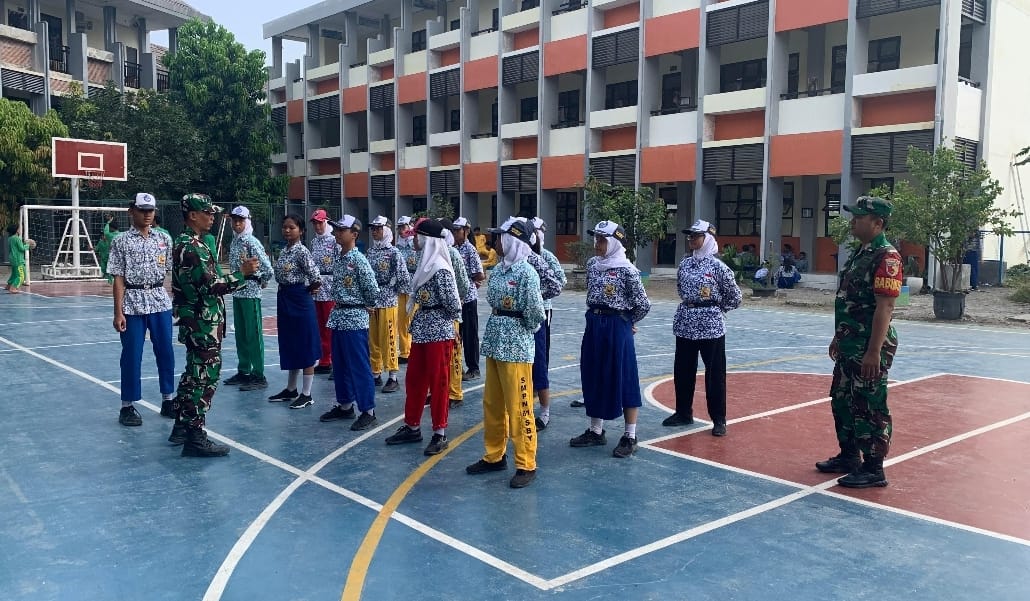 Beritainvestigasinews.id, Surabaya, Babinsa Koramil 0830/06 Benowo, Sertu M. Khusnudin dan Serda Beni Hermansa, memberikan pelatihan Peraturan Baris Berbaris (PBB) kepada siswa-siswi SMPN 61 Surabaya dalam rangka persiapan mengikuti lomba PBB Piala Panglima TNI memperingati HUT TNI ke-79. Pelatihan ini berlangsung di Lapangan Upacara SMPN 61 Surabaya, Jl. Tengger Raya No.13, Kandangan, Kecamatan Benowo, pada Rabu (25/09/24).