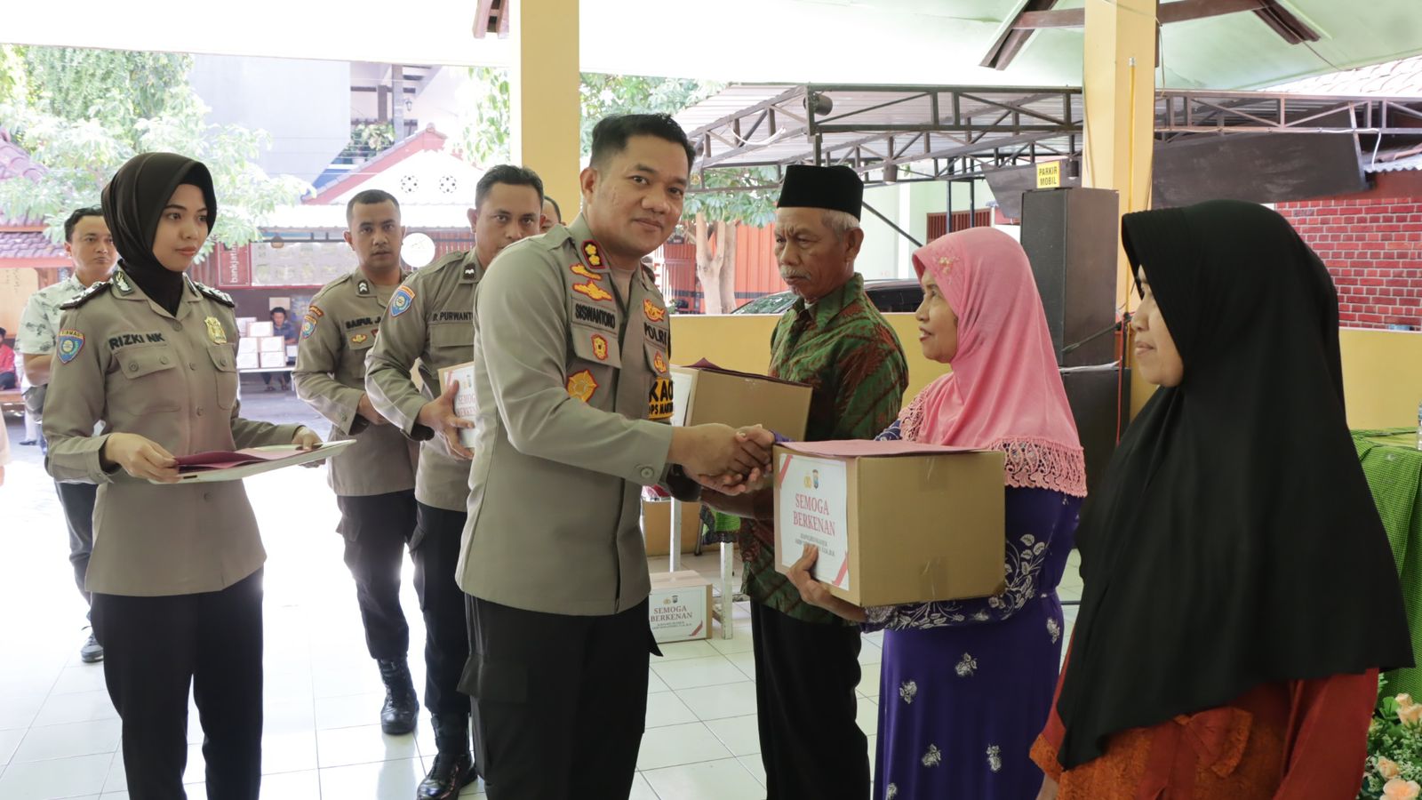Sebagai rangkaian kegiatan Silaturahmi Kamtibmas tersebut, Kapolres Nganjuk juga berkesempatan memberikan bantuan sosial (Bansos) berupa paket sembako dan kebutuhan lainnya kepada anak yatim piatu dan kaum dhuafa yang didatangkan dari beberapa yayasan sosial di sekitar Kecamatan Pace.