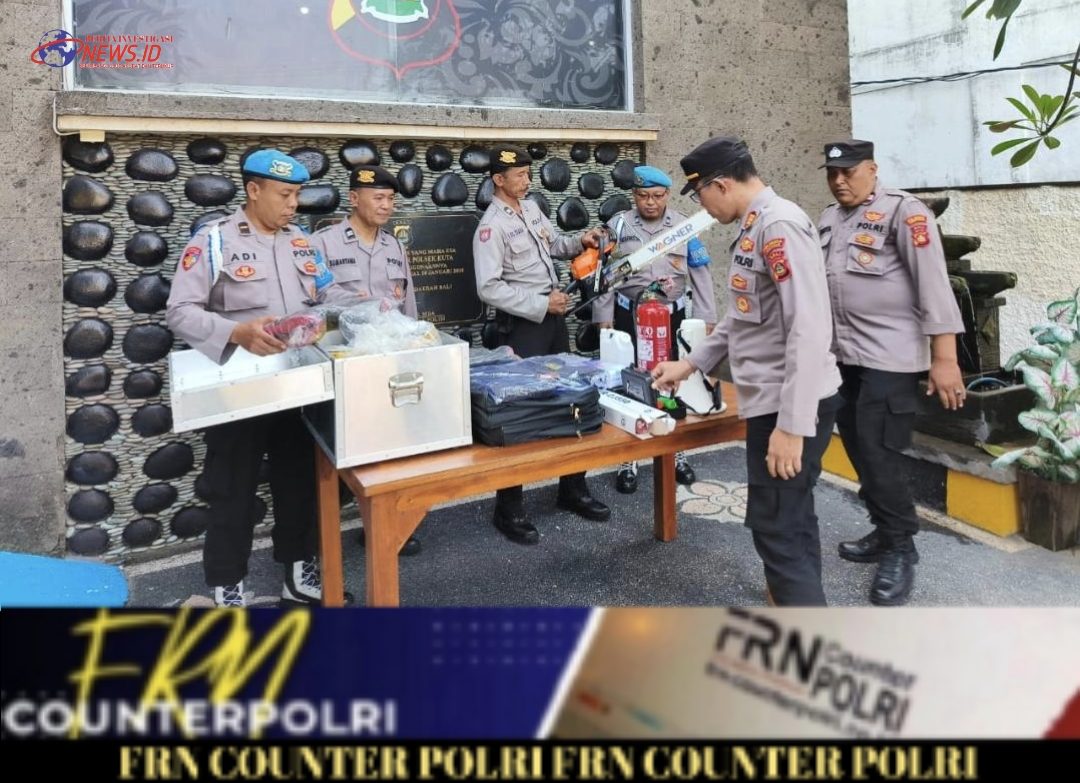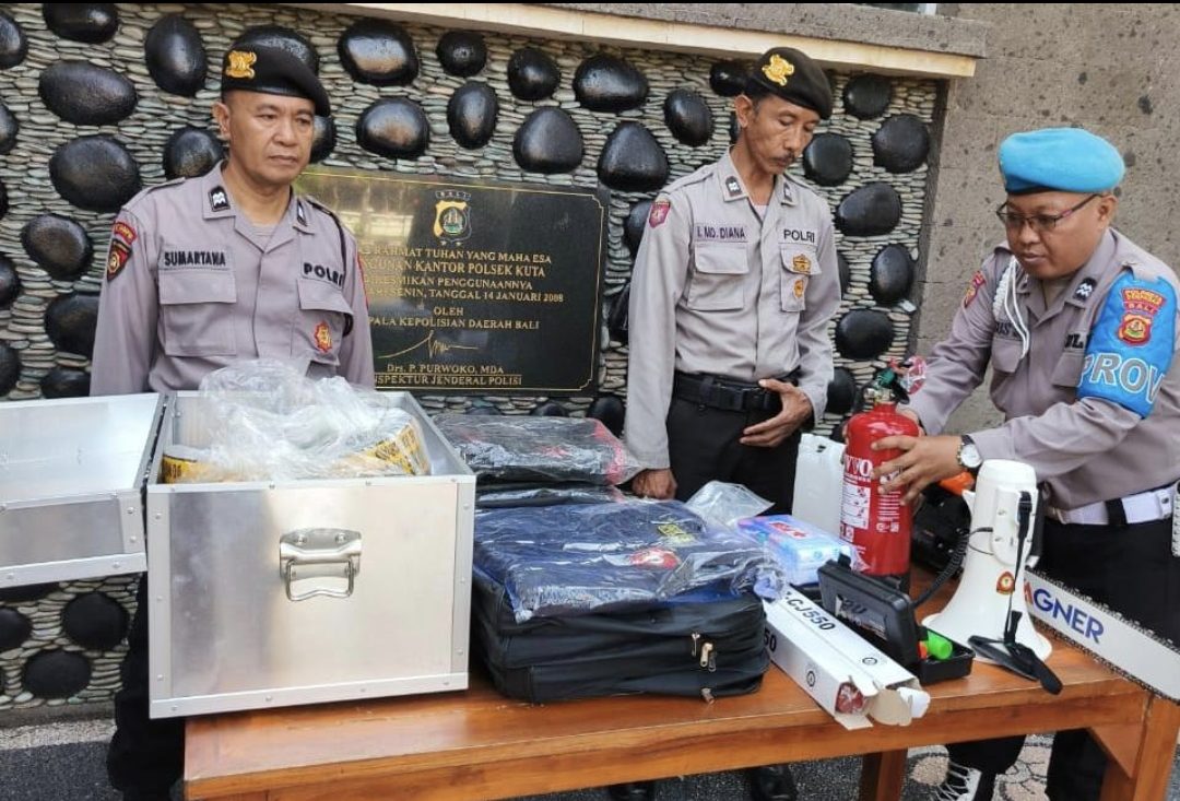 Kapolsek Kuta AKP I Ketut Agus Pasek Sudina, S.I.K,. M.H., melalui Waka Polsek Kuta AKP I GN Bagus Widagda, S.H., didampingi kanit Provam dan panit Samapta Polsek Kuta mengecek langsung peralatan memastikan dalam kondisi siap.