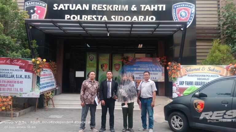 Pada hari Jumat (01/11/2024) sore tim kuasa hukum mendatangi Unit PPA Mapolresta Sidoarjo guna menanyakan kembali perkembangan atas laporan tersebut.