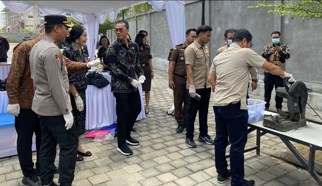 Foto: Wakapolres Kompol Prama hadiri pemusnahan barang bukti di Kejaksaan Negeri Badung. Sumber: Polres Badung.[/caption]