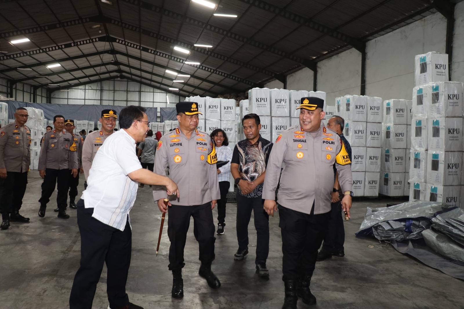 Beritainvestigasinews.id, Tanjung Perak, - Dalam rangka memastikan kelancaran dan keamanan distribusi logistik Pilkada 2024, Forum Koordinasi Pimpinan Daerah (Forkopimda) Kota Surabaya melaksanakan kunjungan ke Gudang Logistik Komisi Pemilihan Umum (KPU) Kota Surabaya di Jalan Margomulyo 11A, Kecamatan Tandes, pada Jumat (15/11/2024).